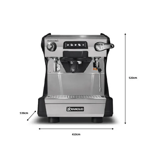 Automatic single-boiler espresso machine with 1 group featuring raised group and automatic dosing (USB).